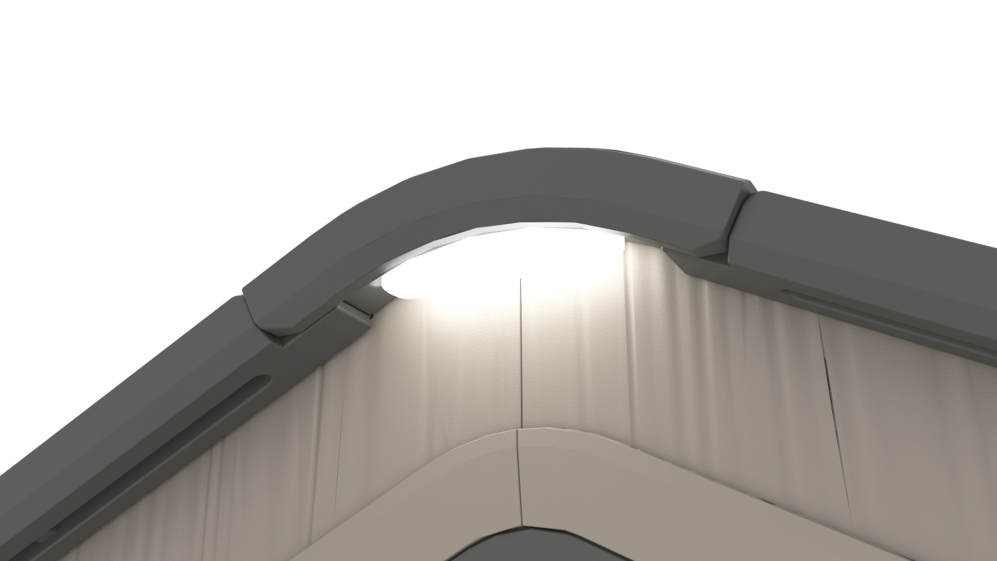 V základní výbavě nechybí dvě praktické police a pět plastových háčků, díky nimž budete mít veškeré vybavení vždy přehledně uspořádané. Pro ještě větší komfort je možné domek doplnit o LED světlo s pohybovým PIR senzorem, které se automaticky rozsvítí při vstupu.