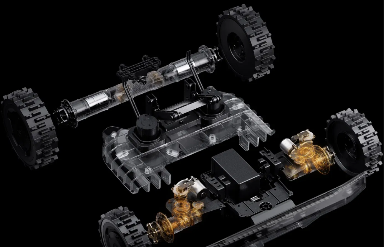 Model X-450E AWD je vybaven systémem dvojitého odpružení, který byl speciálně vyladěn pro pohyb v náročném terénu (ORV). Bez námahy tak zvládá jakýkoliv složitý povrch – od kamenných cest a vysokých obrubníků až po terénní výmoly. Tato robustní konstrukce zajišťuje stabilní stoupání a bezproblémové překračování překážek, čímž zaručuje plynulý průběh práce i tam, kde by standardní robotické sekačky uvízly.