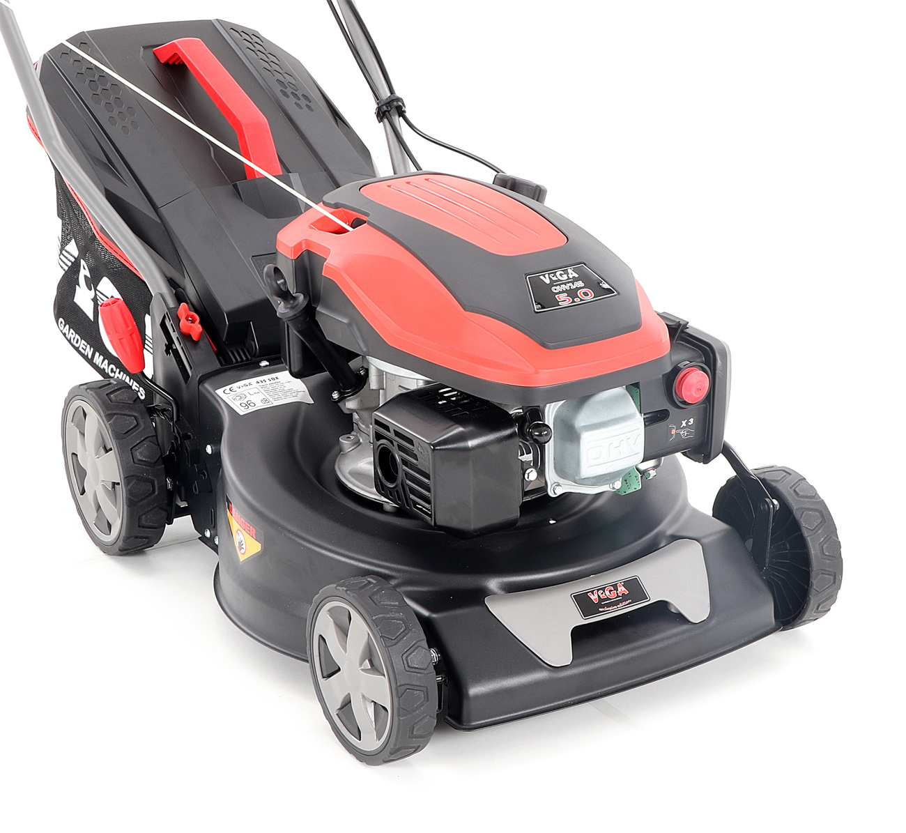 Centrální nastavení výšky sečení je u značky VeGA také samozřejmostí, jako ergonomické měkčené madlo.