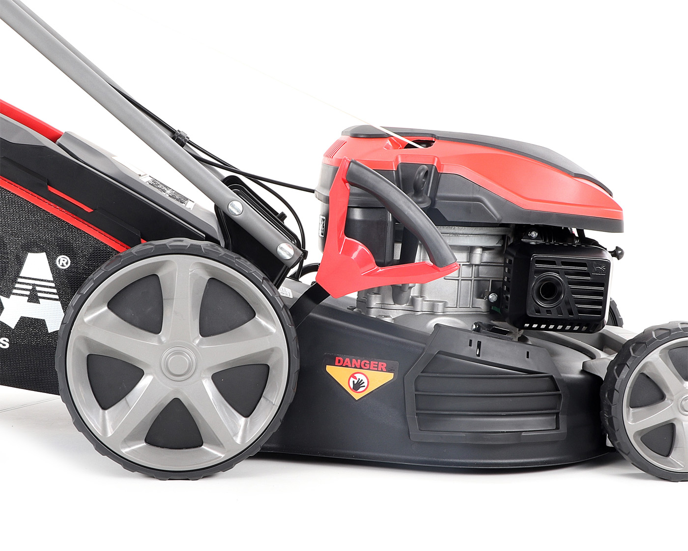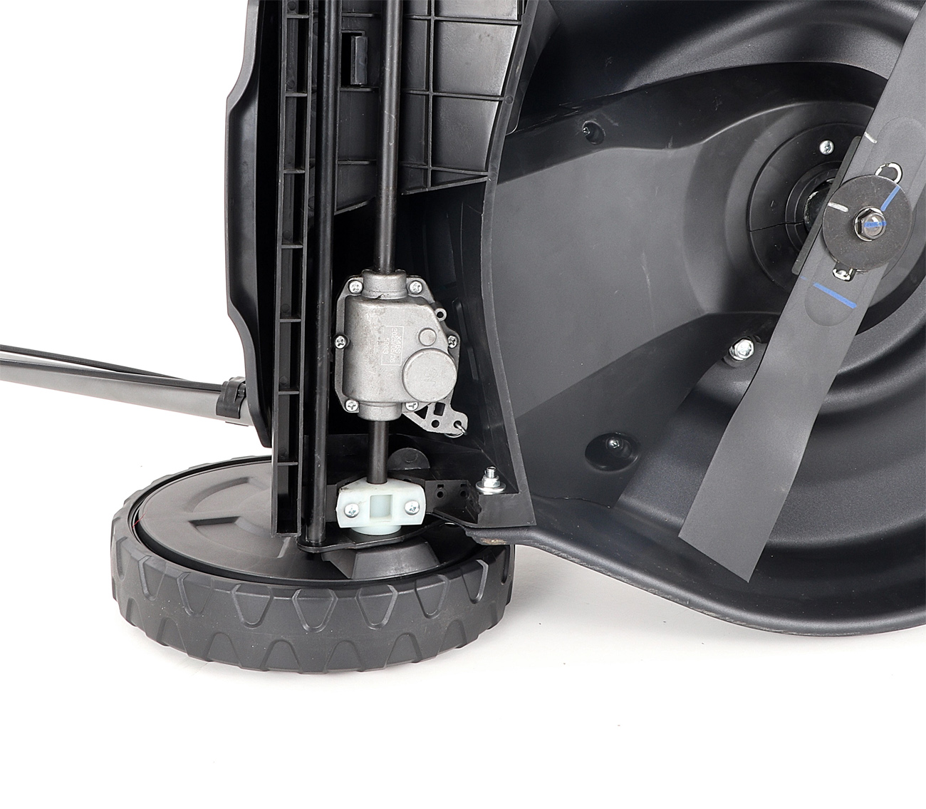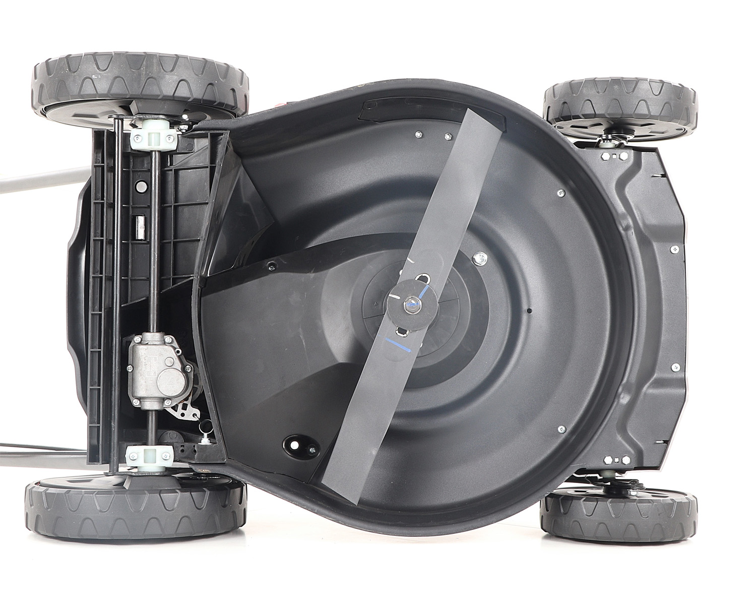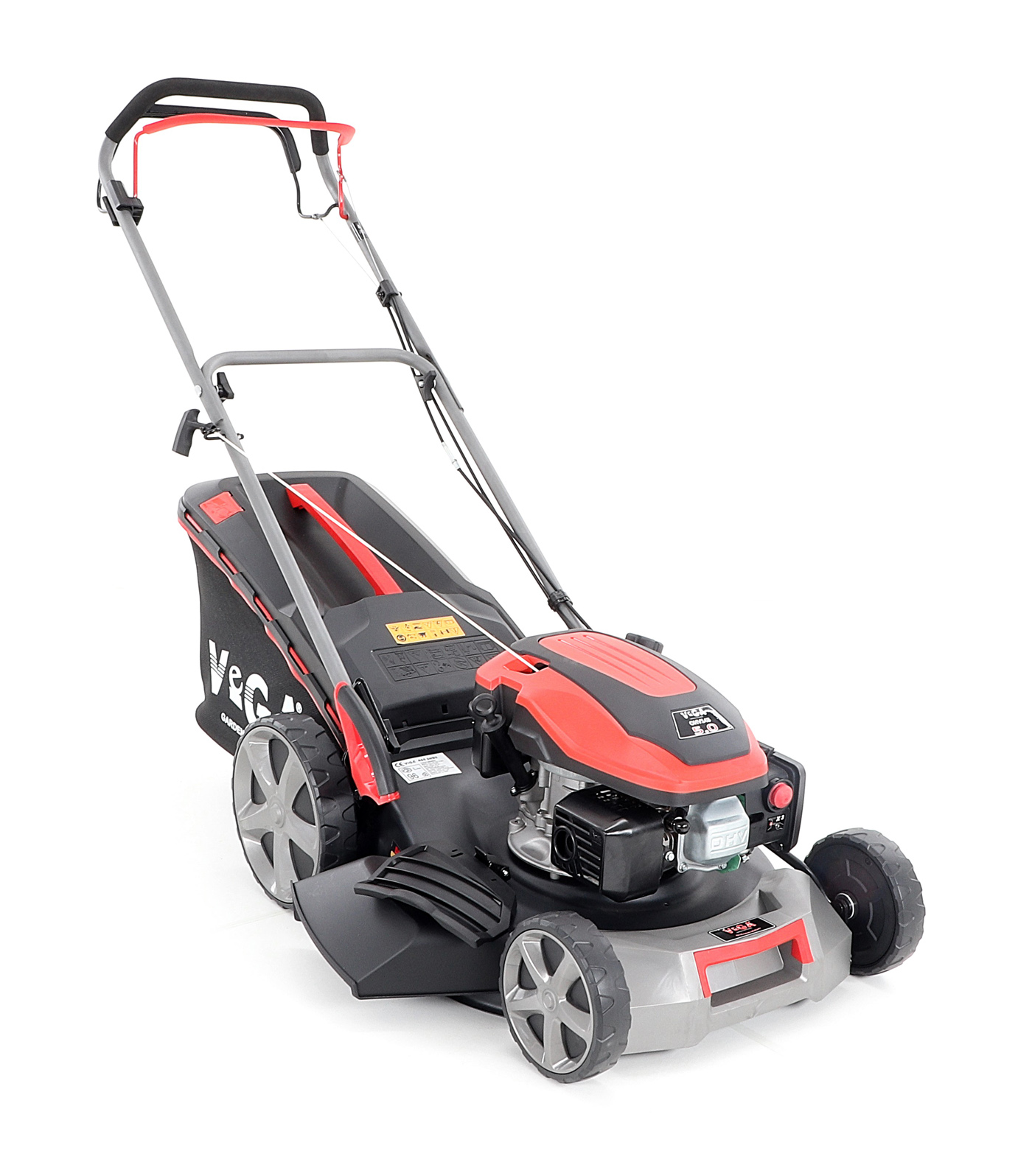 Velká zadní pojezdová kola i přední kola jsou uložena v oboustranných kuličkových ložiscích, centrální nastavení výšky sečení je u značky VeGA také samozřejmostí, jako ergonomické měkčené madlo.